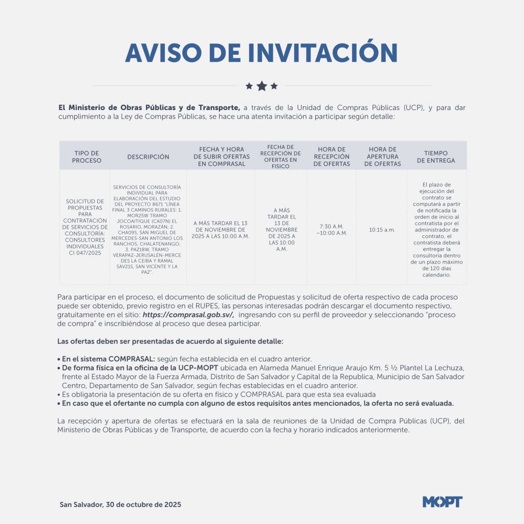 Aviso de licitación sobre servicios de mantenimiento de camioneta donde están equipos perfilómetro